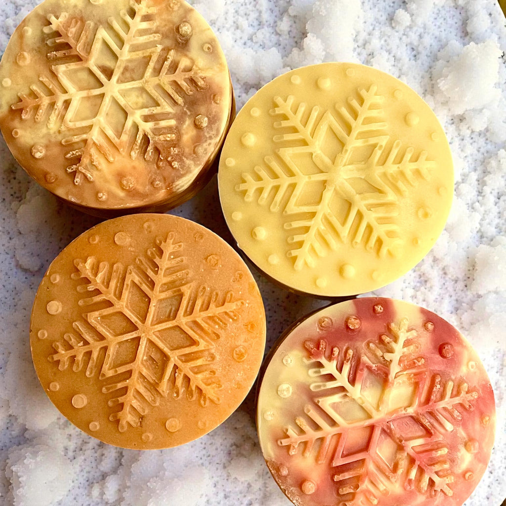 Step into the still beauty of the Frosted Grove, where winter’s chill meets the lingering warmth of autumn’s fruit and spice. This limited-edition collection features four luxurious handcrafted soaps that embody the gentle contrast of frost and glow.
